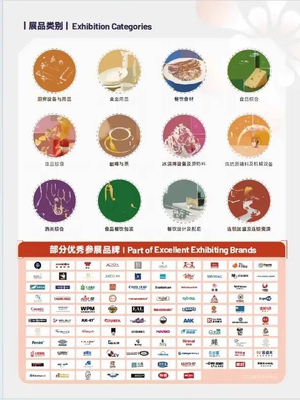 厨房设备与用品、桌面用品、餐饮食材、食品综合、饮品综合、咖啡与茶、冰淇淋设备及物料、烘培设备及原物料、酒类综合、食品餐饮包装
