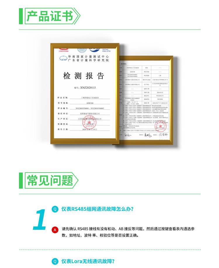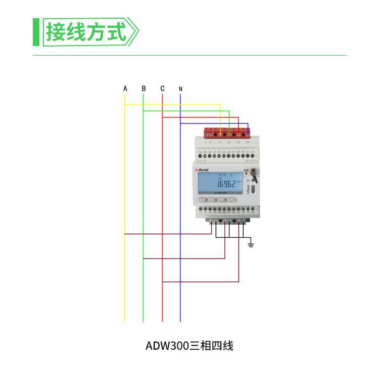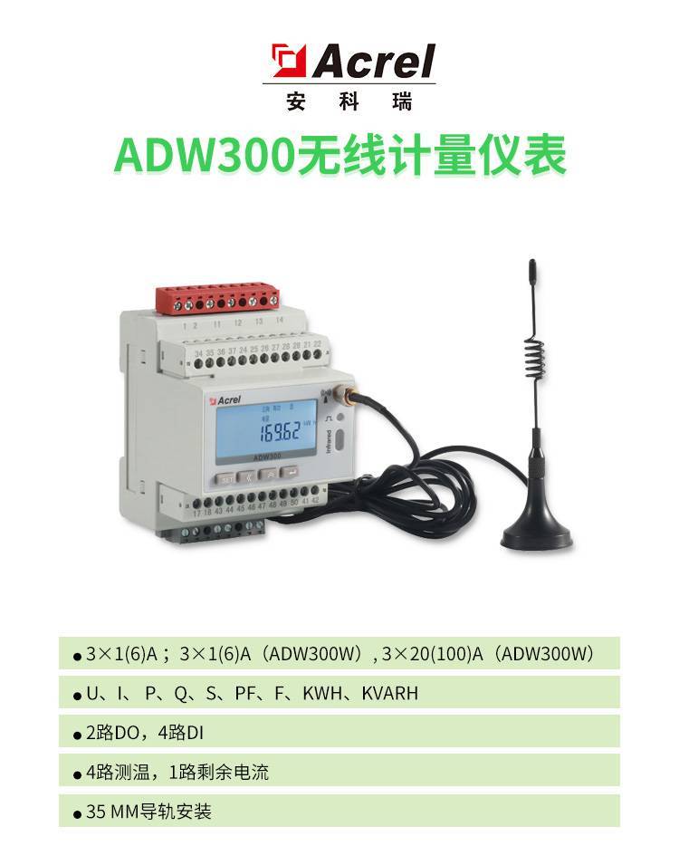 ADW300 无线计量仪表主要用于计量低压网络的三相有功电能,具有体积小、精度高、功能丰富等优点,并 且可选通讯方式多,可支持 RS485 通讯和 Lora、NB、4G、wifi 等无线通讯方式,增加了外置互感器的电流采样 模式,从而方便用户在不同场合进行安装使用。可灵活安装于配电箱内,实现对不同区域和不同负荷的分项电能 计量、运维监管或电力监控等需求。