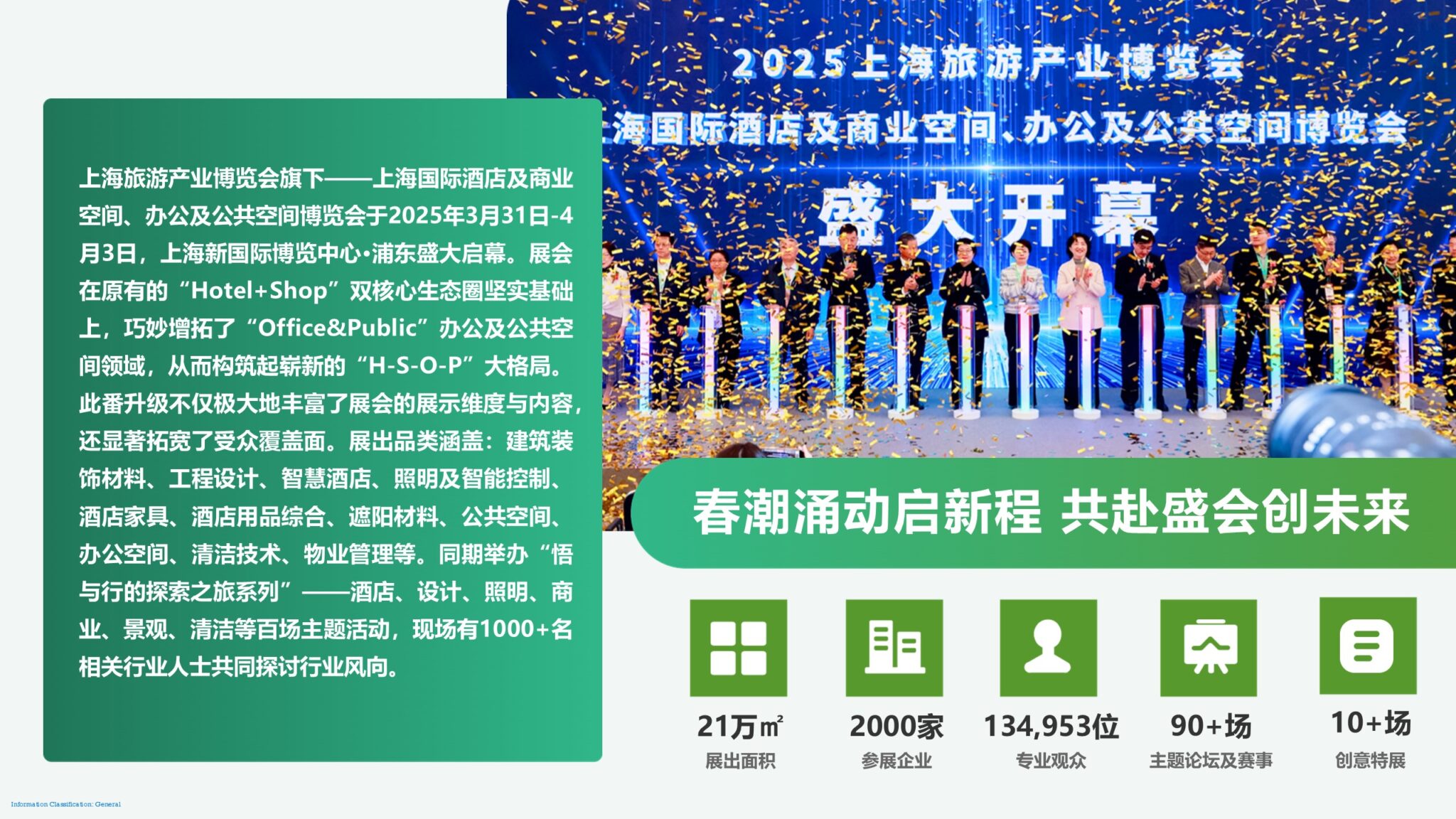 上海国际酒店及商业空间博览会(Hotel & Shop Plus)展示面积将达21万平米,汇聚2000余家展商。展品涵盖卫浴及整体解决方案、陶瓷、地面材料、整装定制及工程设计、墙体材料及精品设计、智慧酒店、照明及智能控制、酒店用品、酒店布草及制服、商业空间、办公及公共空间等各类新展品、新技术,为120000+专业观众提供高效的采购选材与业务交流平台。持续打造高质量、高水平的酒店及商业空间建设与运营采购盛会。(本文内容版权归属聚展所有,未经同意,禁止转发)