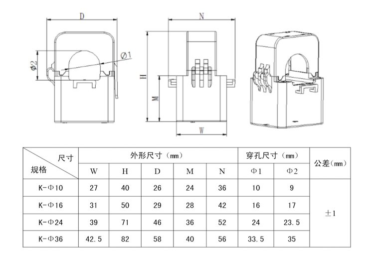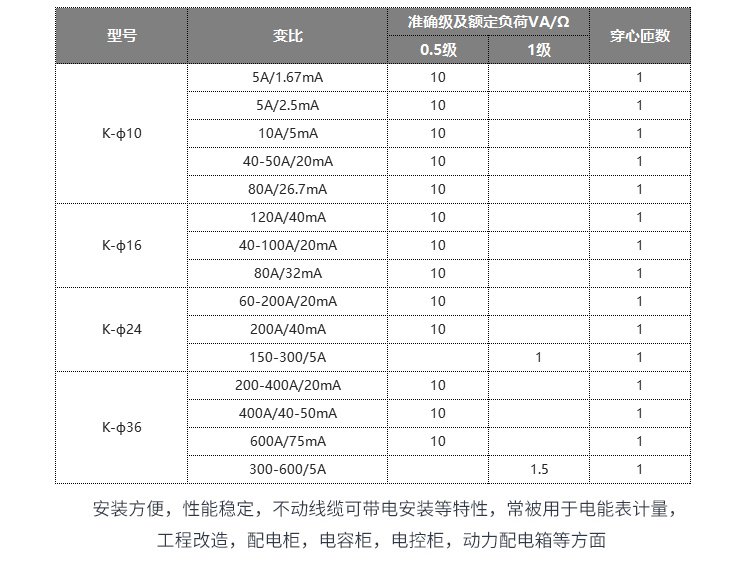 流互感器的首要功能是准确反映一次电流的变化,保障二次回路电气设备的安全运行。AKH-0.66/K K-φ24圆孔开启式流互感器Zui大适应于150A-300A的电流量程,二次侧通用5A标准输出,能够保障测量及保护装置的数据准确性。其额定电压为0.66kV,适用于低压配电系统中,满足电力系统对电流监测的基本需求。