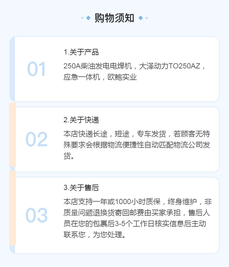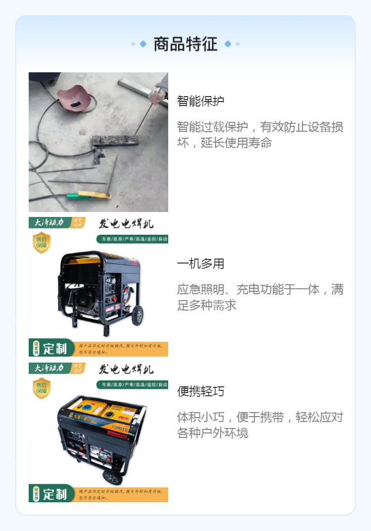 综合来看,250A柴油发电电焊机大泽动力TO250AZ应急一体机作为上海欧鲍实业有限公司推出的优质产品,不仅价格合理,性能全面,且适应性强,可靠耐用。无论是日常焊接作业,还是应急维修供电,均能满足不同用户的需求。如果您在寻找一款拥有高性能、多功能、且经济实用的内燃发电电焊机,不妨考虑大泽动力TO250AZ,选择该设备将为您的工作带来便利和保障。