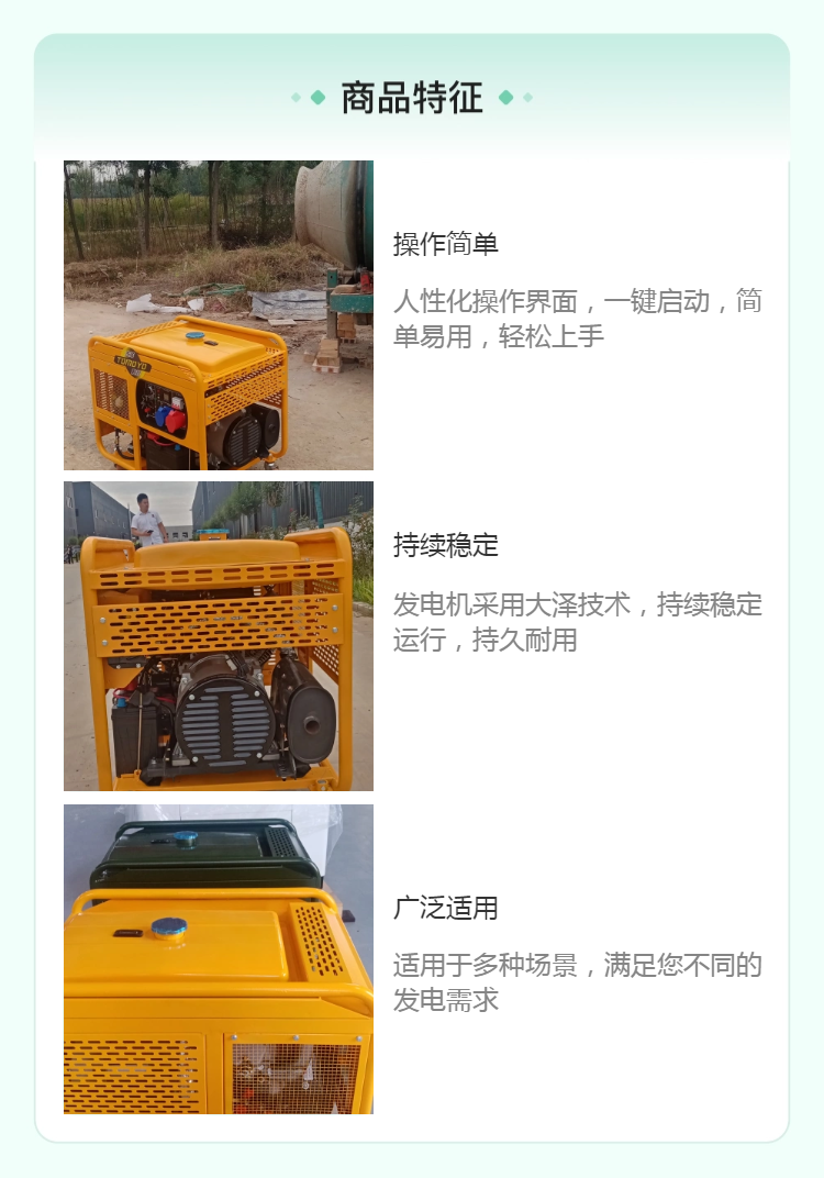 高效的燃油消耗比和优良的机械耐用性,使得该发电机组合成为经济有效的备用电源。单三相输出的灵活设计也满足了不同电力系统的配置要求,避免了多台设备叠加的管理复杂。