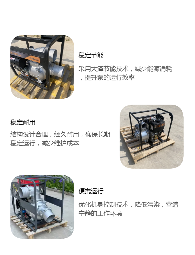 大泽应急泵体现了这些优势,无论是2寸柴油泵的便携性,还是6寸泵户外抢险的强大动力,均能满足不同应急需求。