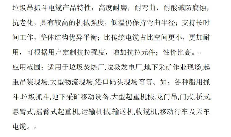 这些技术细节让这款抓斗电缆在实际使用中表现稳定,减少维护和更换的频率,从而降低设备的综合运营成本。