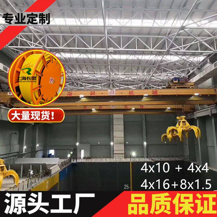 长柔国标RLR/YET 4*16+8*2.5mm²满足这一要求,它具备极强的适应性和可靠性。合理的截面积设计(4芯16平方与8芯2.5平方)结合了动力与控制信号需求,避免过载和信号干扰,为垃圾吊提供全方位的电力保障。