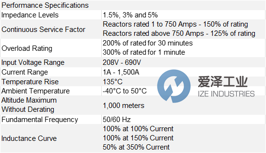 MTE电抗器RL系列RL-03502技术参数及介绍