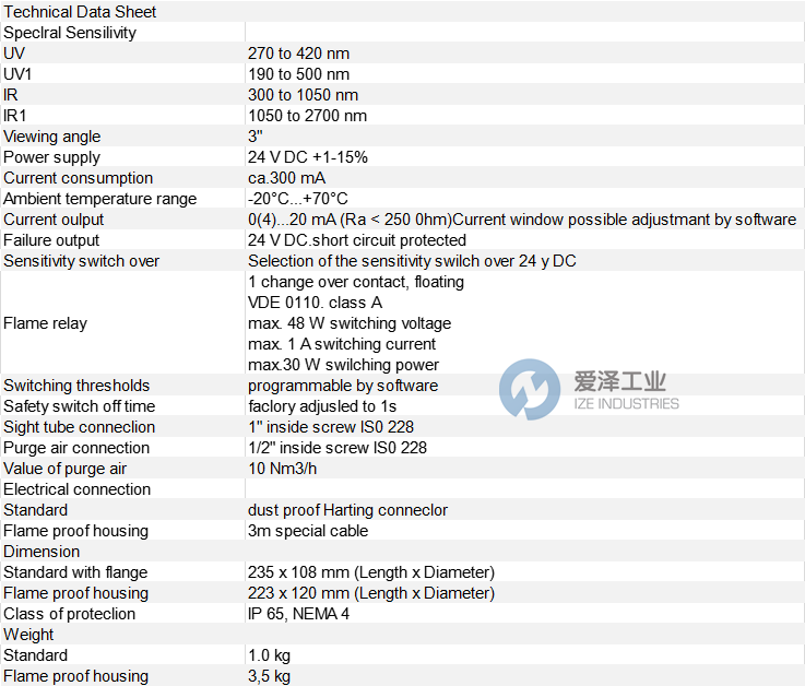BFI火焰检测器CFC2000IR2L技术规格
